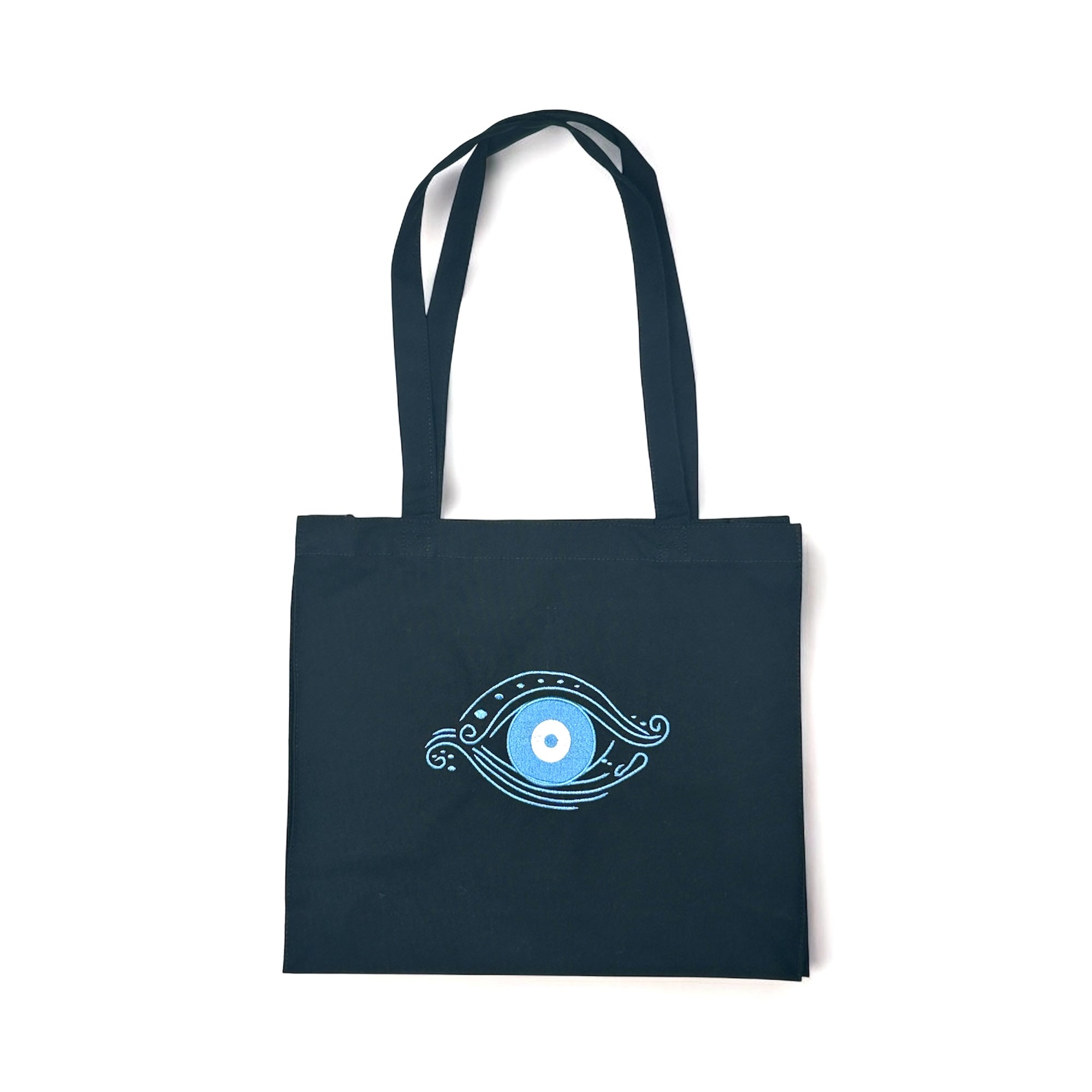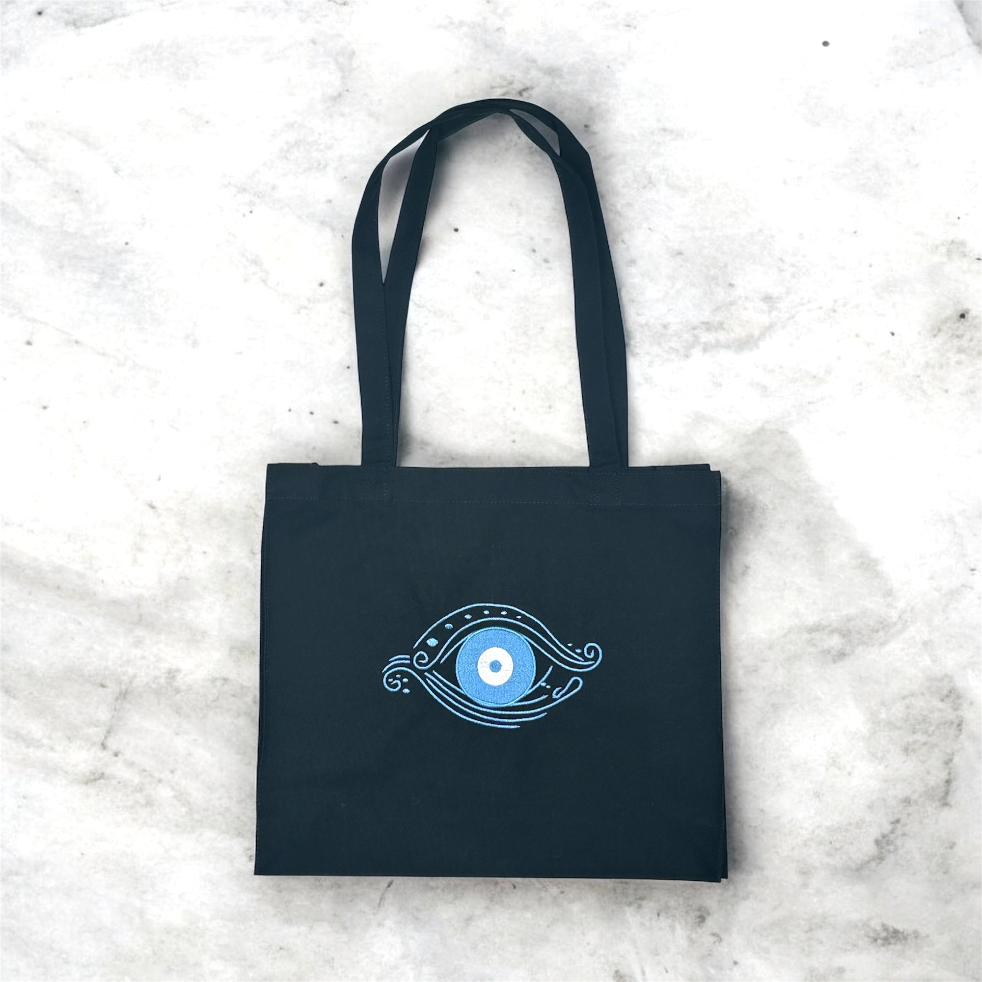 Embroidered canvas bag with Greek eye mati. Perfect for shopping trips or the beach. Great gift idea to celebrate your Greek heritage.