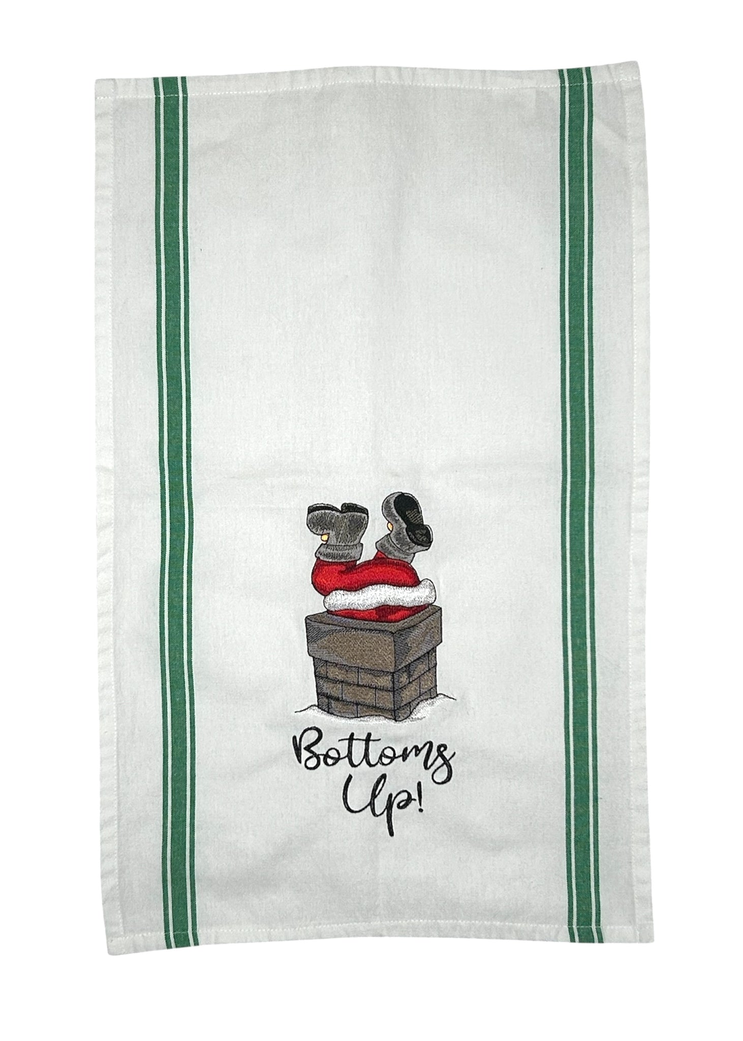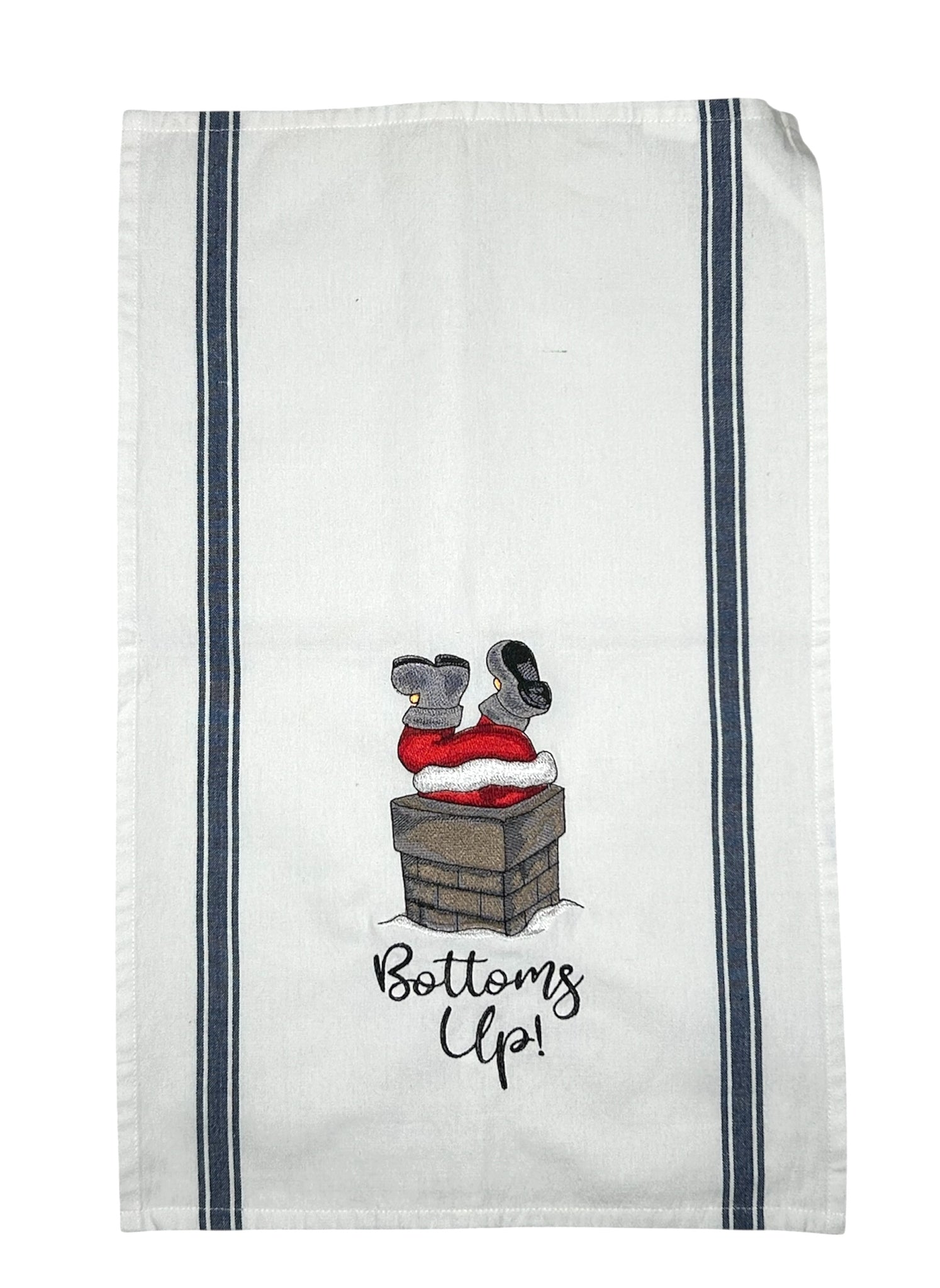 Embroidered kitchen towel with the Santa in Chimney. A lovely addition to your kitchen for Christmas.